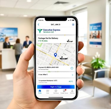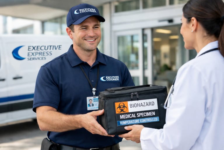 Executive Express Services is not just a courier; we are an extension of your healthcare team. Exclusively serving hospitals, laboratories, and pharmacies, we specialize in the secure, compliant transport of biological specimens and pharmaceuticals. When patient care is on the line, we deliver precision, speed, and peace of mind.